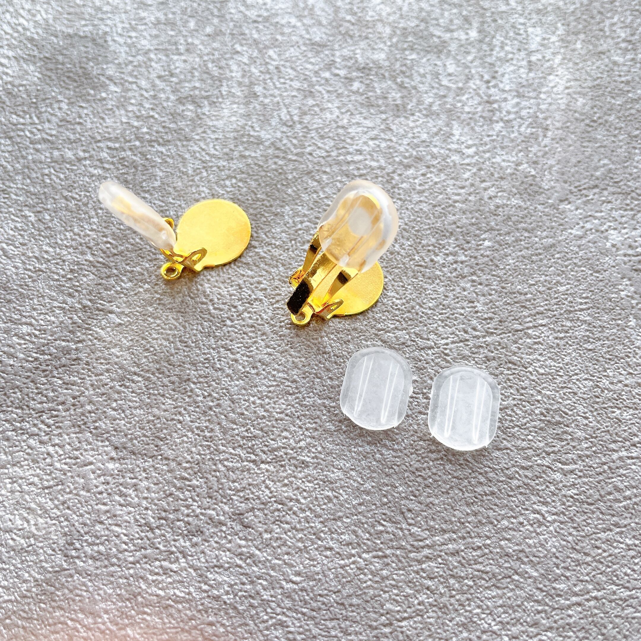 製品にクリップ式イヤリング+シリコンカバーを付けて発送致します。