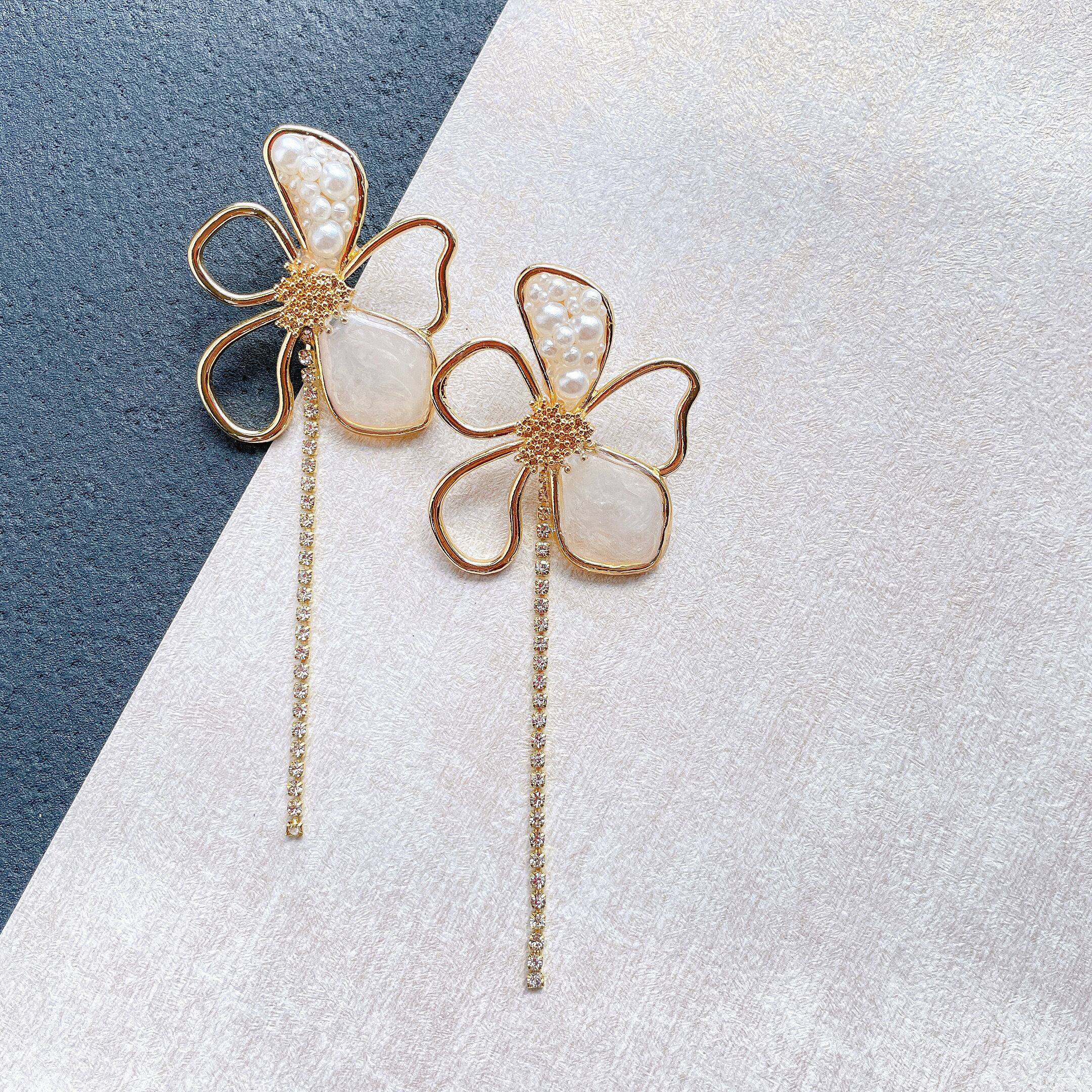フェミニンなデザインをメインに、たらりと揺れるクリスタルチェーンは上品な女性らしさも演出。